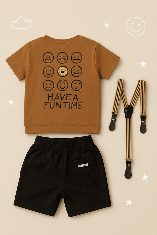 Stylish boys’ brown suspender set Tshirt and bottoms. Perfect for birthdays, and special occasions.