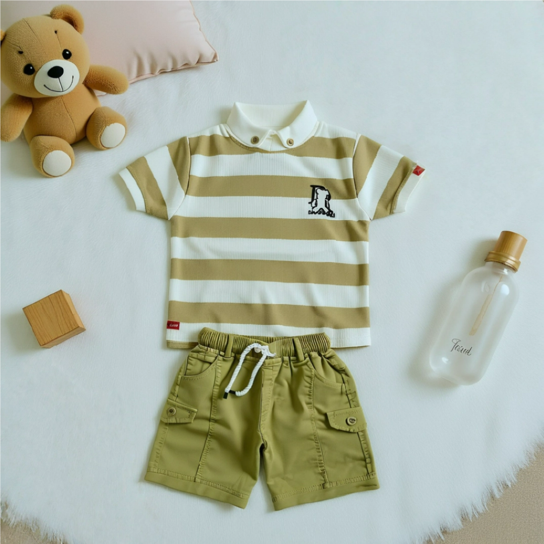 Cool boys’ white and green T-shirt with shorts for everyday comfort and style.
